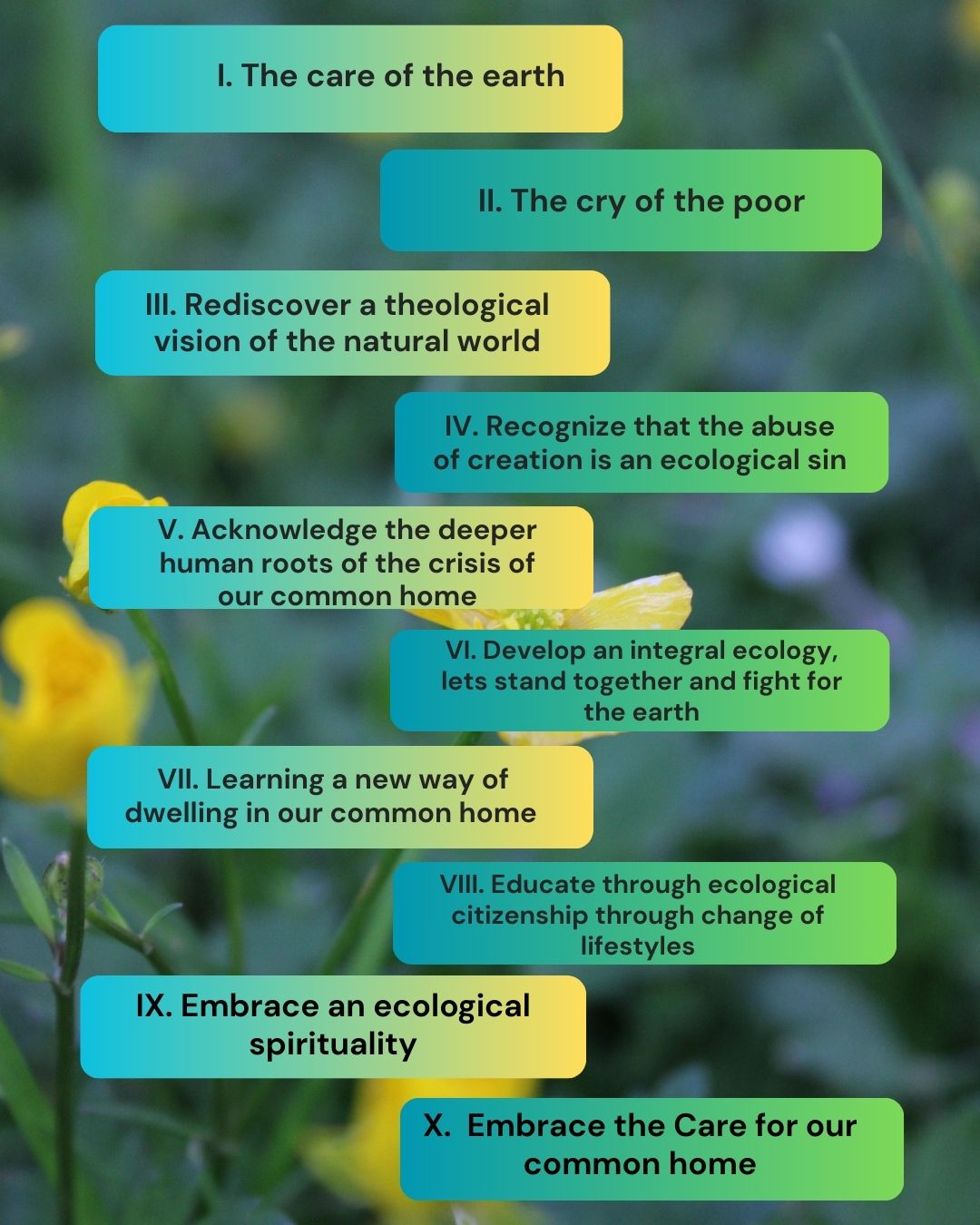 Al final de las sesiones, los novicios habían aprendido lo que ellos llamaban «los 10 mandamientos de Laudato Si'» (véase la imagen).