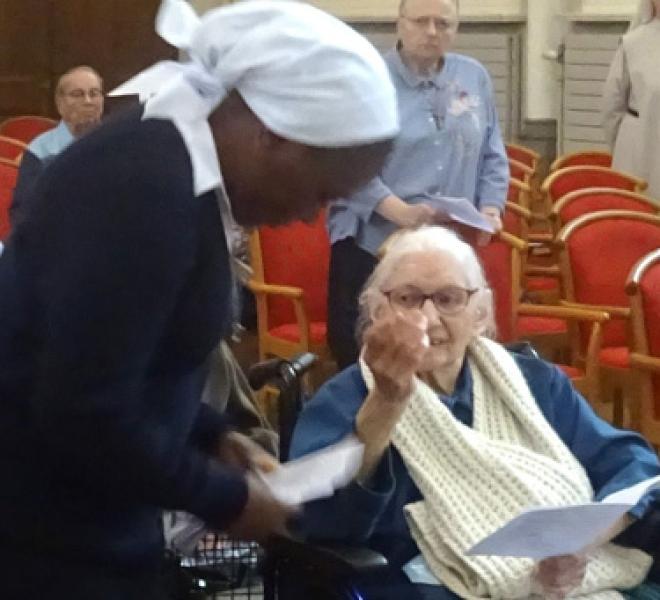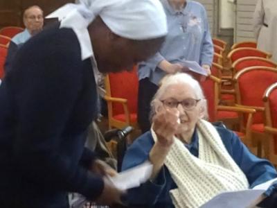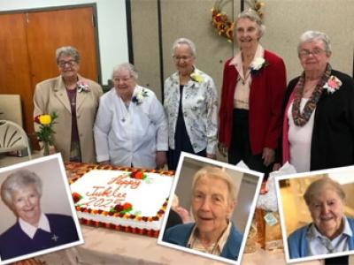 Hermanas, familias, amigos y asociadas se reunieron para celebrar con las hermanas que cumplieron 85, 75, 70, 60 y 25 años como Hermanas de la Santa Unión. La hermana Laurette DeChamplain, en Estados Unidos, celebró conjuntamente sus 85 años como hermana de la Santa Unión y su 103º cumpleaños.