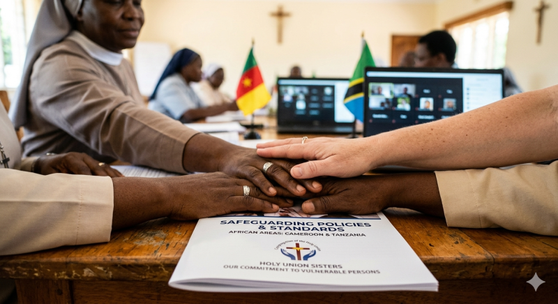 Une session de formation sur les politiques de sauvegarde a rassemblé des Sœurs des zones du Cameroun et de Tanzanie de la Congrégation de la Sainte-Union. Animée par Tina Campbell, cette session s'est déroulée avec une participation à la fois à Rome et en ligne via Zoom. Les Sœurs Joan Mary Kiyveyonge, Vera Ngalim et Kuate Michèle étaient présentes à Rome, tandis que les Sœurs Eugenia Mshana, Alice Nyaga, Emiliana Mshana et Jesca Wachanga se sont jointes depuis la Tanzanie. Cette session a permis de passer en revue le travail déjà accompli, d'identifier les principales réussites et d'apporter des ajustements pratiques, avec une attention particulière portée aux sept normes de sauvegarde et à leur application dans la vie quotidienne.