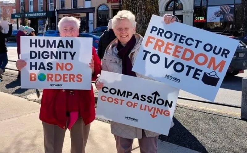 NETWORK recently became one of the No Kings rally sponsors, providing resources and materials to participants across the country. The organization has evolved over its five-decade history: while it began as an exclusively Catholic sisters' organization, NETWORK now describes itself as a faith-based, justice-oriented group "inspired by Catholic sisters," with membership open to all who share its values.